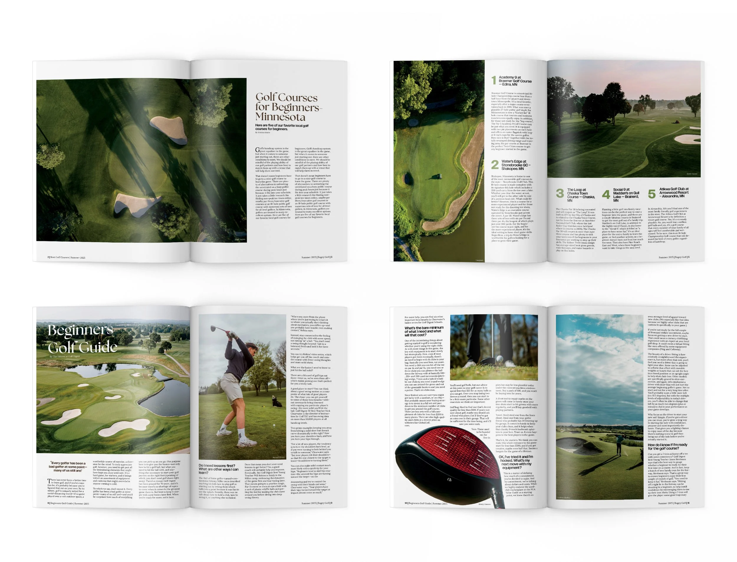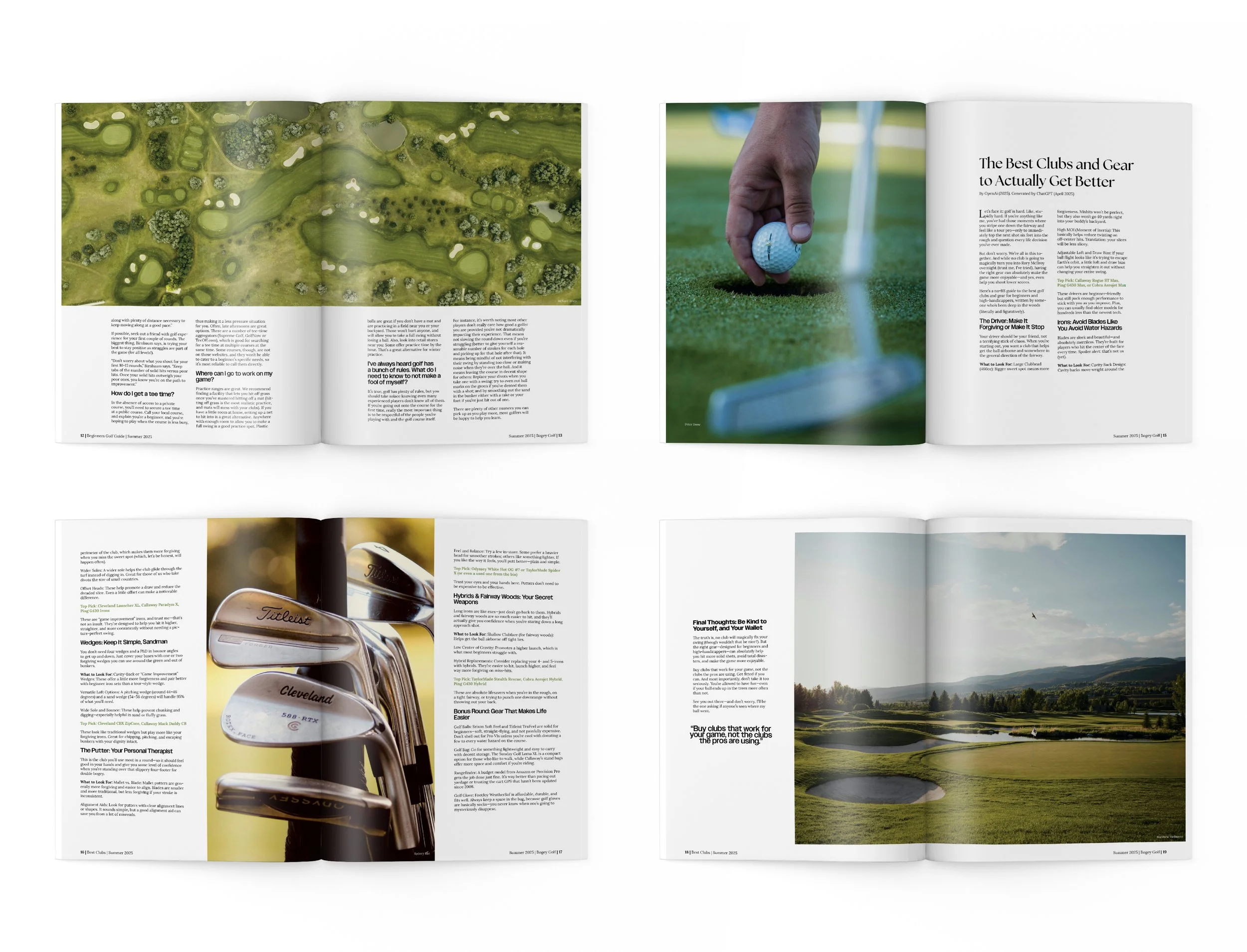 This project features a fully designed golf magazine. The layout and overall visual direction were created from scratch, including imagery selection and article sourcing. After designing the magazine, the pages were printed, cut by hand, and assembled through physical binding.